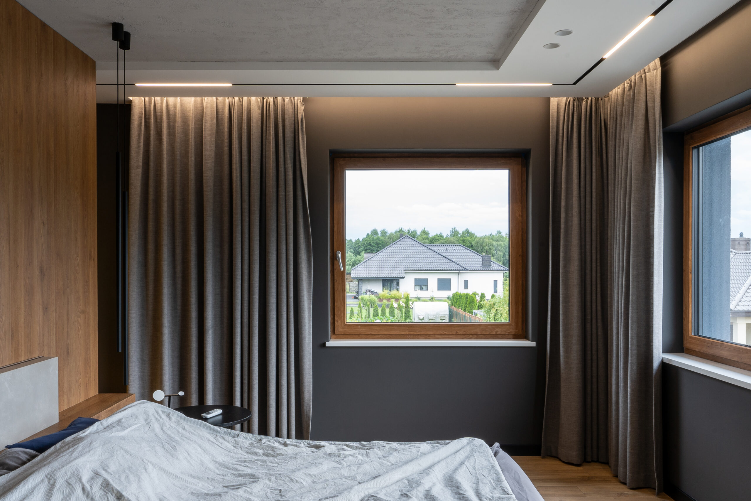 Sypialnia to wyjątkowe pomieszczenie w każdym domu i mieszkaniu. Jej urządzenie będzie miało realny wpływ na to, jak odpoczniemy po dniu pełnym pracy i niekończących się obowiązków. Jeśli aranżacja sypialni nie zostanie odpowiednio przemyślana, może dojść do sytuacji, kiedy w środku będziemy się męczyć, zamiast relaksować. Z tego powodu każdy element wystroju, każdy detal powinien być bardzo dokładnie i rzetelnie przemyślane. W ten sposób inwestor uniknie w późniejszym czasie negatywnego wrażenia i rozczarowania. Aby odpowiednio się nastroić przed projektowaniem własnej sypialni, koniecznie sprawdź nasze aranżacje, które skupiają się na oknach. Okno w sypialni to element, który realnie wpływa na samopoczucie w tym pomieszczeniu. Zerknij na nasze prace, by stwierdzić, który styl odpowiada Ci najbardziej i w którym kierunku iść we własnej sypialni!